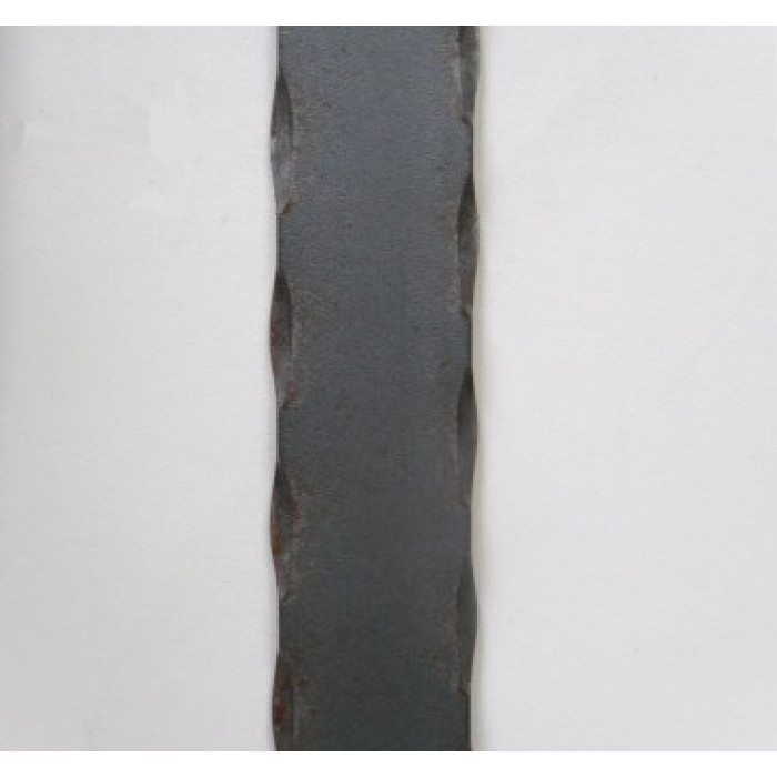 Forged decorative rolled strip "Zamika" 40x4x2000 mm rolled metal element widely used in architectural decoration and artistic forging. It is typically made from low-carbon steel, which ensures ease of processing and good ductility. During production, the heated strip is processed with a forging tool or passed through special rollers, creating a characteristic texture with notches and irregularities that mimic hand forging. This strip combines a distinctive appearance and strength, making it popular in the manufacture of grilles, gates, furniture, fences, railings, and interior elements. It is easily painted, bent, and welded, allowing for the creation of both modern and classic decorative solutions.