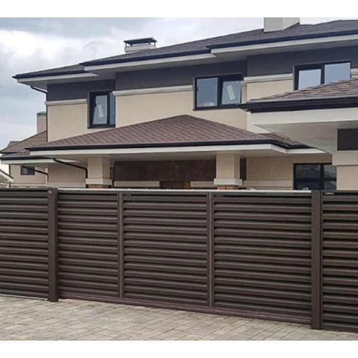 A louvered fence is used where it is important to combine protective functions with aesthetics and ventilation. It got its name from the design with inclined slats, similar to window blinds. It is a universal solution for those who value both functionality and aesthetics. It combines protection, ventilation and style, which makes it popular in private and commercial construction.